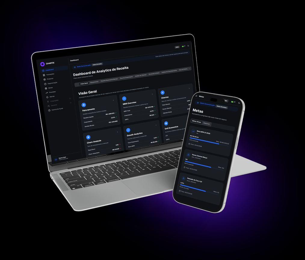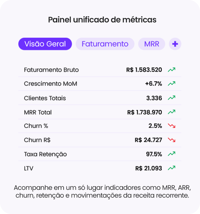 Para negócios de assinatura e recorrência que já não conseguem mais confiar em crescimento, churn e retenção acompanhados em planilhas.
